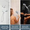 SOLID BRASS BRACKET PROVIDES A SOLID BATH BASE: Made with solid brass, offerring a superior corrosion resistance. It is sturdy and wear resistant. Perhaps a cheap plastic deck will break, leak or fall. But you don't have to worry about these things happening on this one. 70 INCH SUPER FLEXIBLE LONG STRETCHABLE HOSE: Stretchable and extra length hose can reach all the way down to the bath tub with inches to spare. It saves trouble when bathing your child and pet. Cleaning the bathtub is more than enough. STAINLESS STEEL SHOWER HEAD, BUILT TO LAST : Made with 304 stainless steel without cracking. The nozzles made of high heat silicone, free BPA. UNIVERSAL CONNECTION AND EASY INSTALLATION: 1/2 universal connection, Fits well with standard shower head and hose. Easy installation, no tedious installation steps. We provide a simple wrench, no toolbox. Life can be easier. WHAT CAN WE DO FOR YOU: We promise, the 30-day return guarantee and lifetime warranty are always valid. If you have any question about your new shower head, just contact us through Amazon e-mail. Communication is a prerequisite for problem solving. We are sure to help you solve the problem.