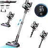【Up to 55 Mins Runtime】Breaking the conventional 6 batteries, this vacuum battery pack is upgraded to 7*2500mAh batteries. The detachable battery vacuum cleaner for home provides a continuous running time of up to 55 minutes in eco mode(15 minutes in boost mode), which is enough to cover the cleaning work, without worrying about power failure during cleaning. A full charge takes only 4-4.5 hours, reducing the waiting time. 【450W/38Kpa Powerful Suction】 Laresar cordless vacuum cleaner, 2024 latest upgraded 450 W brushless motor can output an excellent suction power (noise <68dB) of up to 38Kpa, it can easily remove dirt and debris from floors, pet hair and lint from carpets. 【2-in-1 Anti-tangle Brush Roller】The brush roller of the cordless vacuum cleaner has both hard and soft bristles, suitable for floors and carpets. Not only does this brush roller effectively reduce hair tangles, it won't scratch your wood floors. Series 5's more powerful motorized floor brushes support edge cleaning. 【LED Smart Panel】The stick vacuum cordless built-in sensor, is easy to operate and shows various functions at a glance. You can visualize the status of the vacuum cleaner, such as suction mode, remaining power, and roller brush/filter clogging warning. By pressing the button you can change the 3 cleaning modes.
