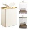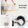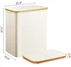 2 Removable Inner Bags with Steel Rings - The hamper comes with 2 removable inner bags for easy carrying dirty clothes to the laundry. We've ditched the traditional button and Velcro design for a new steel-rimmed inner bag, greatly increases convenience and durability 160L Large Capacity Laundry Hamper - Two section design makes it easy sort your clothes into dark and white prior to laundry day. 160L (22.5''*14.5''*29.1'')large capacity laundry sorter to meet a week's change of clothes storage Collapsible Laundry Baskets with Wheels - This laundry hamper boasts a foldable design, making assembly a breeze in just a few minutes. When not in use, fold it into a slim laundry basket just 2.5 inches thick and can be placed in corners and other narrow places. (Note: The wheels use adhesive design, after installing the wheels, please do not dismantle them at will, which will affect the stability.) Laundry Basket with Lid & Bamboo Handles - The lid on the top of the hamper keeps dust out and prevent the spread of peculiar smell. There are two bamboo handles on the side of the laundry hamper which makes it easy for you to move it to laundry room, bedroom or child's room Waterproof and Durable - Laundry hamper with lid is made of high quality thickened linen fabric, which is lightweight and easy to carry. The top uses an eco-friendly bamboo frame and there are 4 sturdy support rods inside to make the laundry hamper stronger and will not be deformed by excessive clothing. A stylish black laundry basket with lid will look great in any style of room