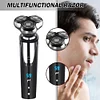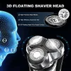[Advanced Floating Shaving] With the latest blade technology, the 3D rotary Men electric shaver adopts high-speed motor and efficient floating shaver which fits the contours of the face, neck and even chin for fast and effective shaving [Waterproof, Dry & Wet Shaving] Fully Waterproof design for easy cleaning, it allows you to shave whether wet or dry. Enjoy your dry shaving when sitting on sofa, or do a refreshing and comfortable shaving in shower [Multi-functional Electric Razors] 3 in 1 electric razor for men equipped 3 detachable heads, including men shavers electric, sideburns trimmer, and nose trimmer. The 3D electric shavers head's floating dual-track foil and precision blades for fast and effective shaving, give you a close-fitting skin contact. [Electric Shaver for Men] The 3D floating electric razor for men with dual-track stainless steel blades fits the contours of the face, neck and even chin for a quick yet clean shave. Rounded edges move smoothly over skin to reduce irritation, give you a smooth, close and comfortable experience [Suitable for Traveling] This cordless razors for men comes with a USB cable(NO USB charger), can be connected to the computer, power bank, car, and other USB device, more secure and convenient. Enjoy a easy charging at home, or on the road