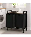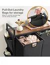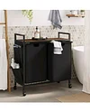 Double Laundry Hamper: Keep your room clutter-free by avoiding the pile-up of dirty laundry in one corner. This laundry hamper sorter features two divided compartments with a total capacity of 24 gallons (45L), enabling you to effortlessly sort your clothes by color, fabric type, or whether they belong to adults or children. Large laundry hamper can meet your needs. Laundry Hamper with Shelf: This 2-section laundry basket includes a spacious metal tabletop for folding laundry. Laundry basket organizer serves as a practical laundry room table, offering additional space to neatly arrange your detergents and toiletries, or even to display a few plants as aesthetic hampers for bedroom. Removable Laundry Organizer: The basket bins are attached to the basket bracket using Velcro, facilitating easy detachment for washing. Additionally, each liner is equipped with a bottom backing to prevent sagging. This bathroom storage hamper allows for convenient pulling out for easy washing and maintenance. Heavy Duty Laundry Hamper: The main body of the laundry hamper with shelf is constructed from a sturdy iron frame, ensuring stability. The metal top plate can bear up to 44 lbs. The laundry hamper bins are crafted from Oxford fabric, which is water-repellent and washable. Adjustable anti-tip kits are included to help dirty clothes hamper prevent any wobbling. Versatile Application: The aesthetic appearance of modern laundry hamper makes them a practical sorter for laundry room organization and storage, seamlessly fitting into bedrooms, bathrooms, or hallways. Designed for small spaces, this laundry basket with removable bag as a countertop that cleverly conceals dirty clothes. Laundry sorter with shelf offers additional storage wherever needed, aiding in maintaining a tidy and organized living space.