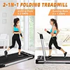 2 in1 Folding Treadmill: Max weight capacity of 220 pounds and the running area size is 42''X 16.9'', it is suitable for most people. Compared with the traditional treadmill, this 2-in-1 folding treadmill has two modes. Speed 0.5-7.5 MPH: Jogging and running. Speed 0.5-4 MPH: used as a Under desk treadmill to walk and jog while you are working or watching to exercise your body, raise heart rate, boost metabolism.
